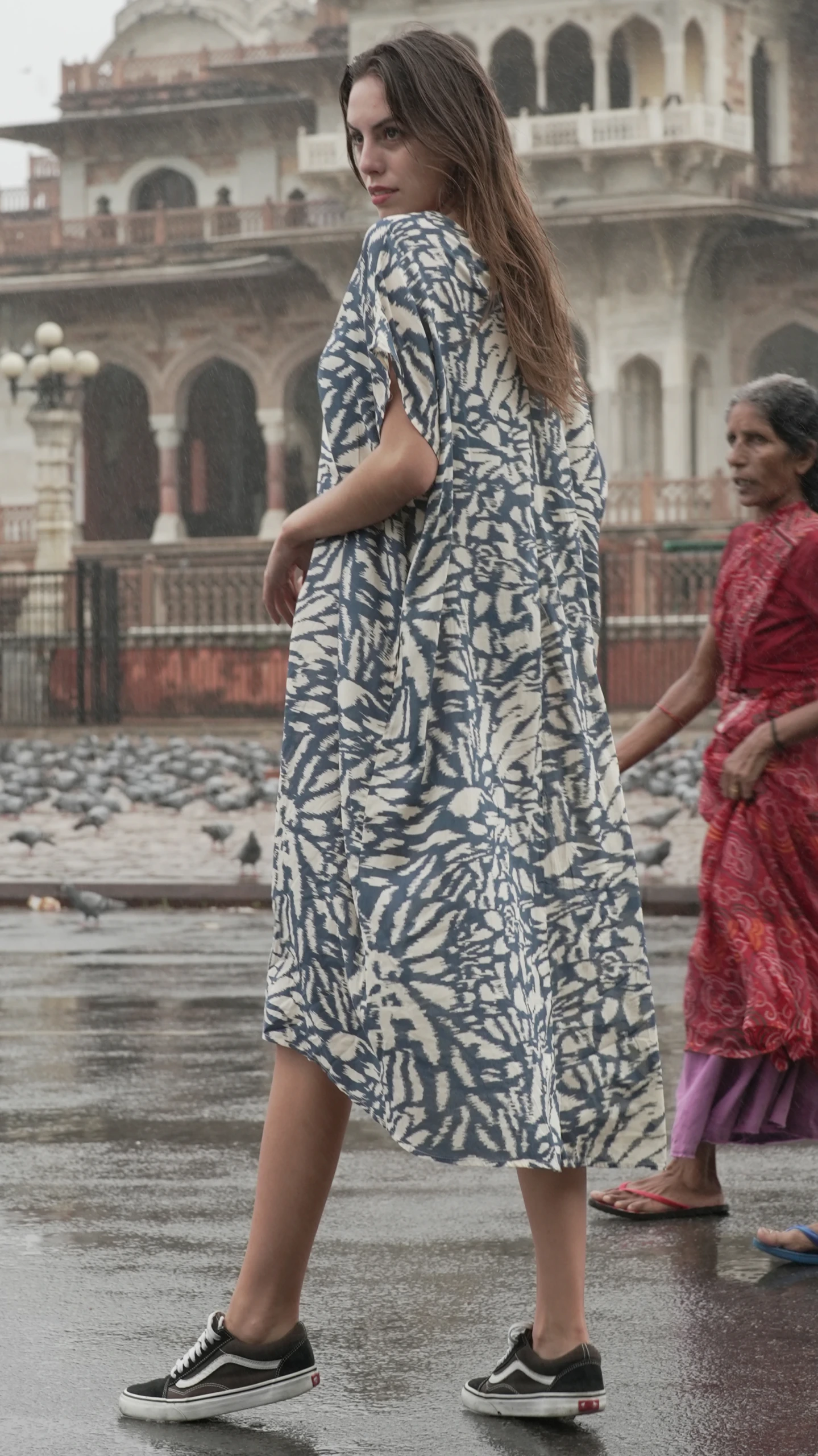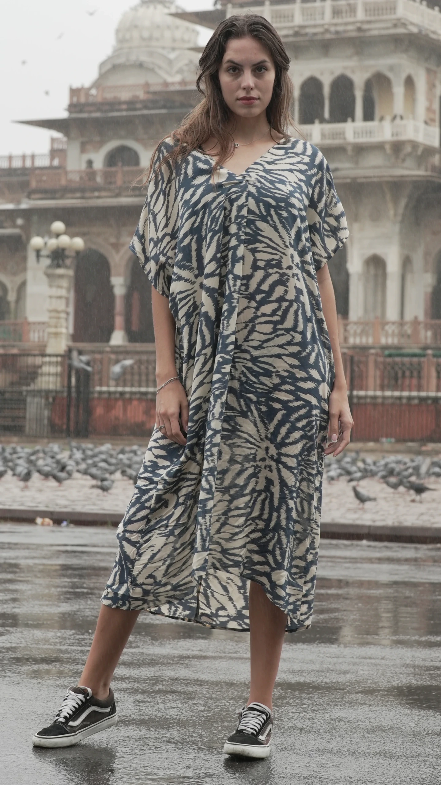 cool breezy, vibrant and eye-catching, this so special kaftan in printed rayon fabrication is perfect for brunches, beach days, and everything in between.