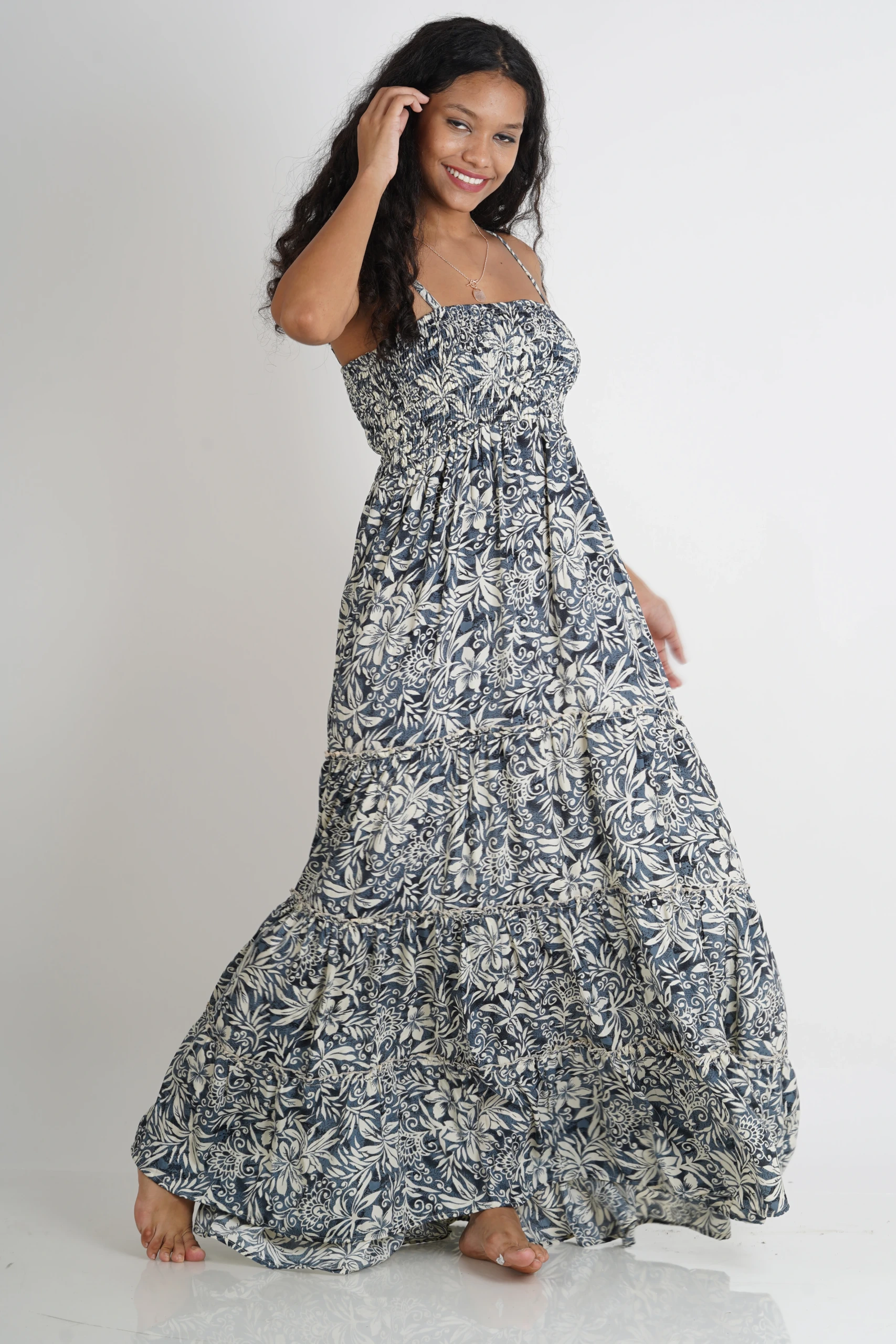 This so comfy and basic yet beautiful maxi dress is featured in soft sari silk fabrication.