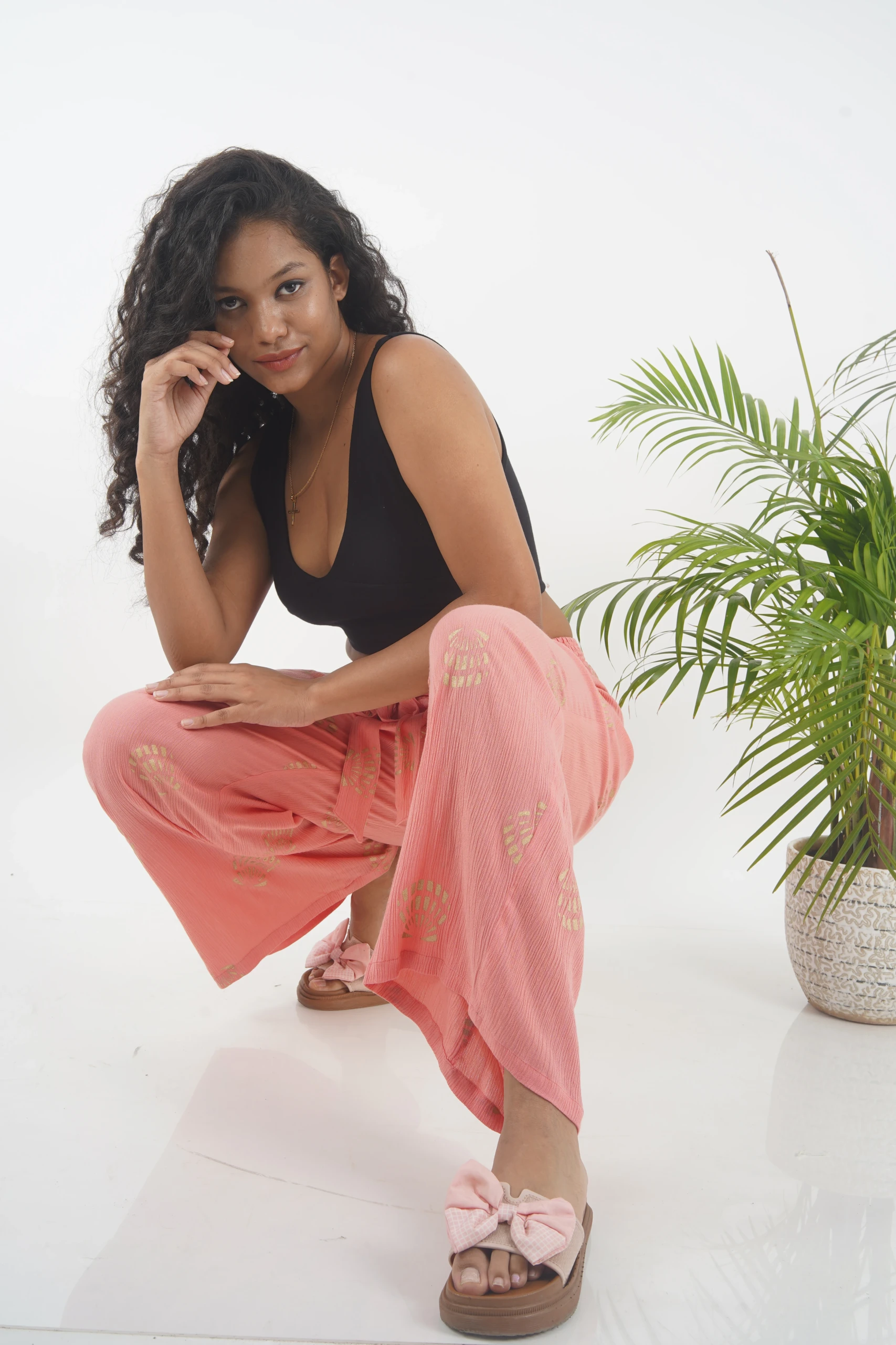 your go-to-summers cropped pant designed in breezy gold print crinkly crepe rayon is a perfect choice for throughout the season.