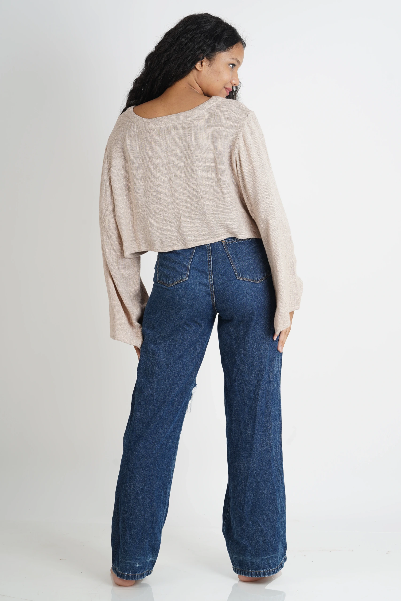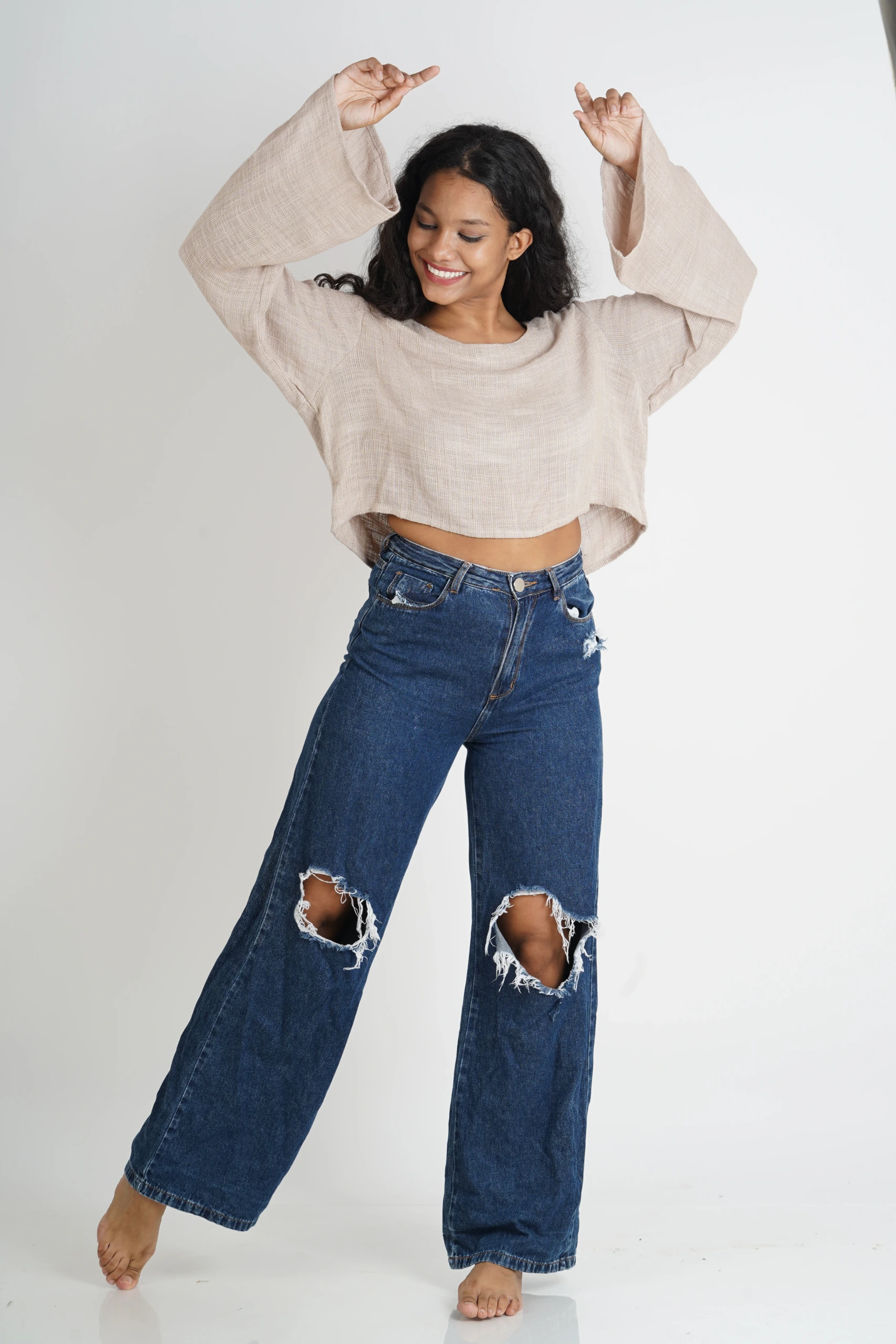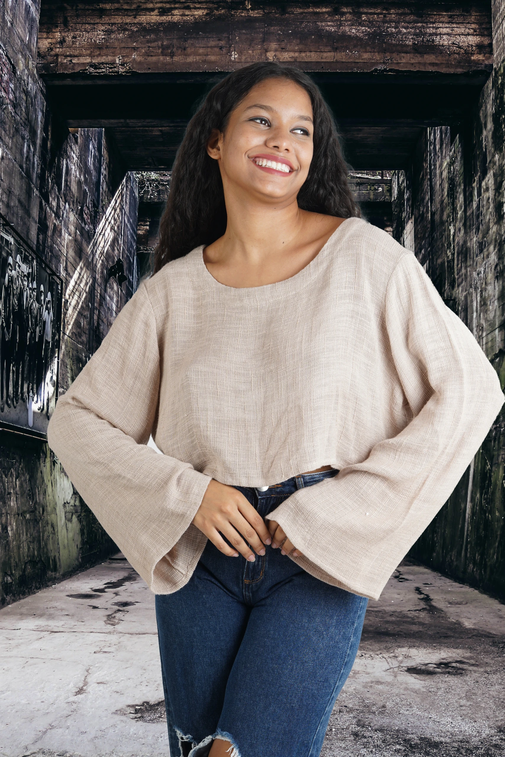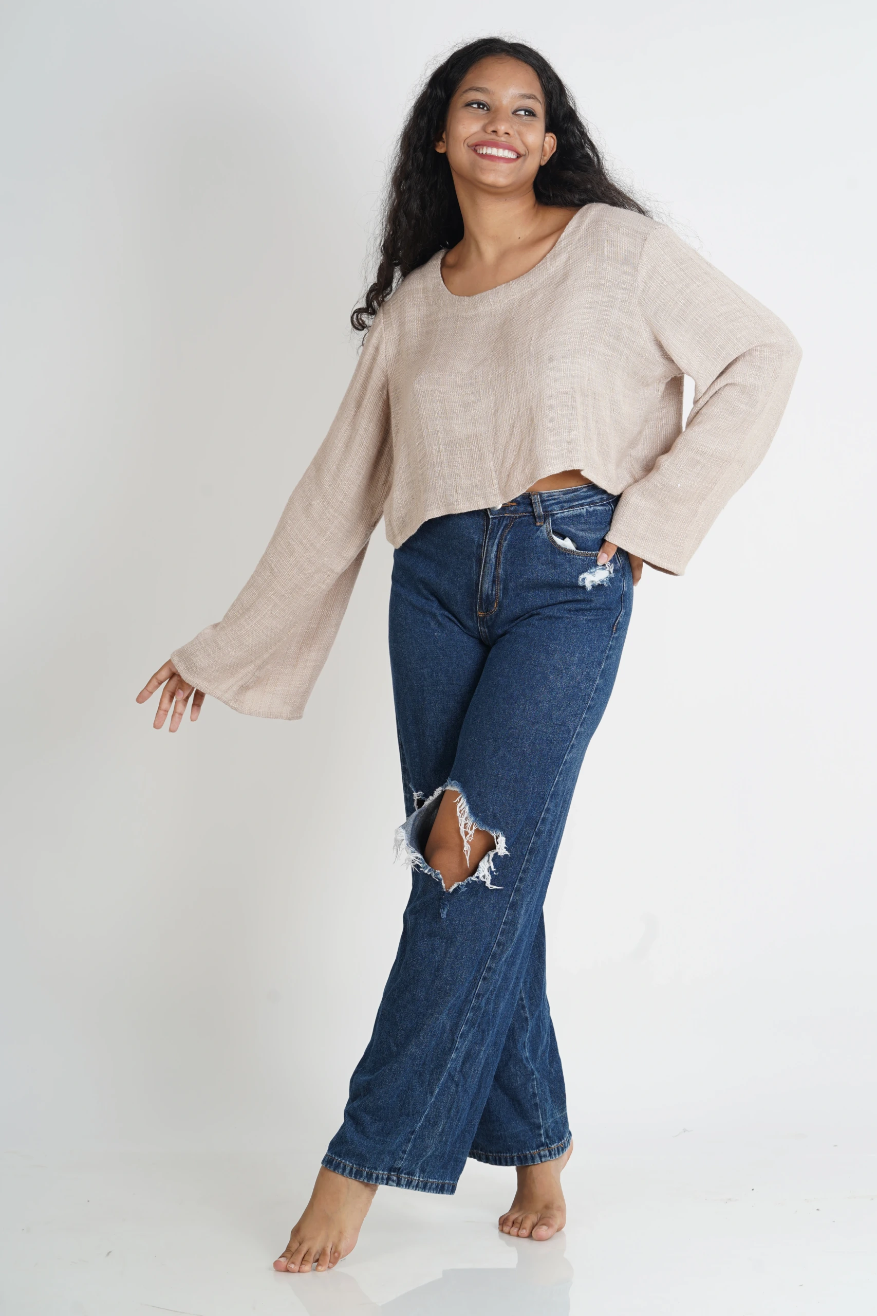 FEATURES- Wide scoop-neckline, long wide bell sleeves, dropped shoulders.