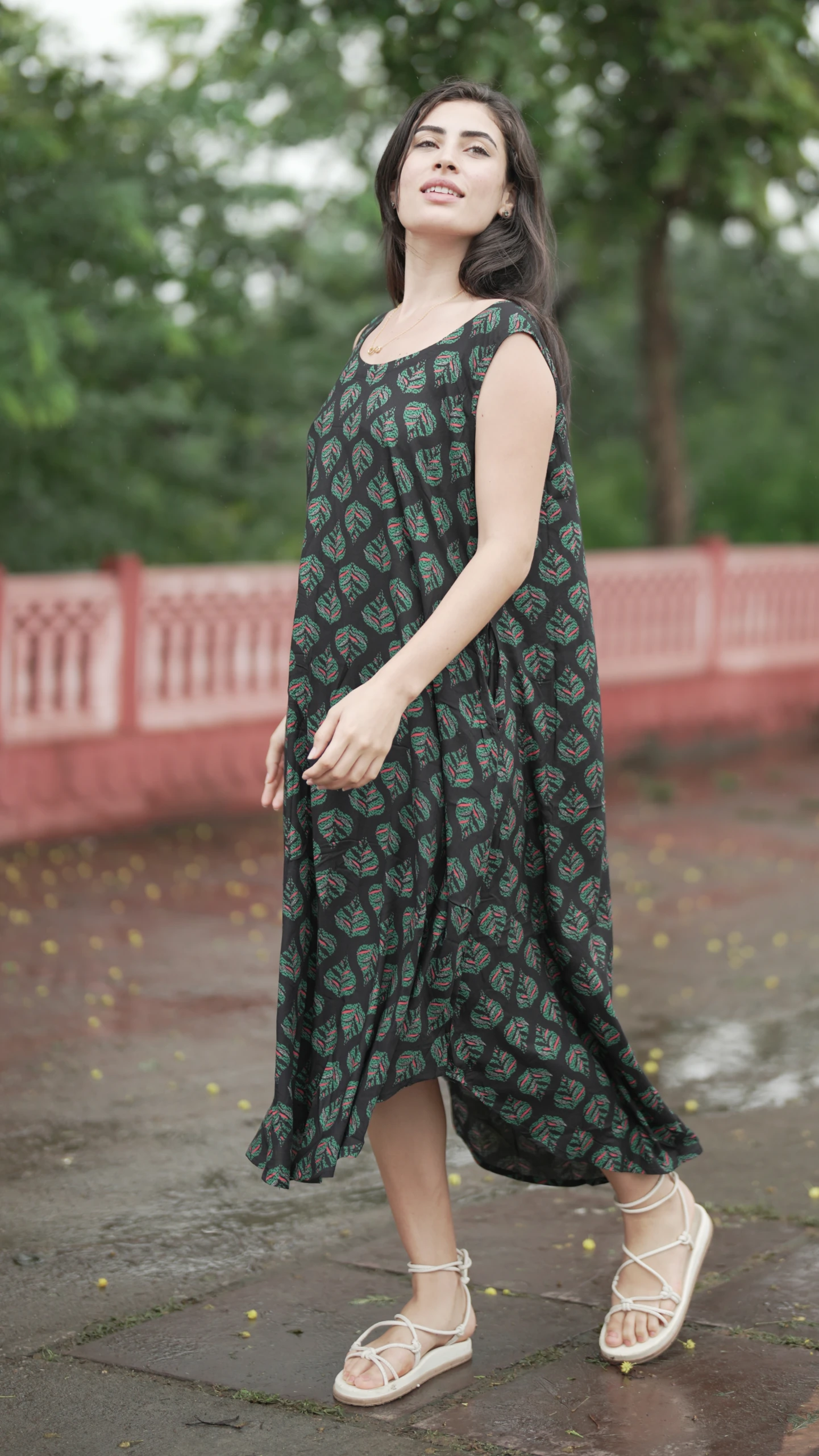 FEATURES- Scoop neckline, sleeveless silhouette, curved and slightly high-low hem, side pockets.