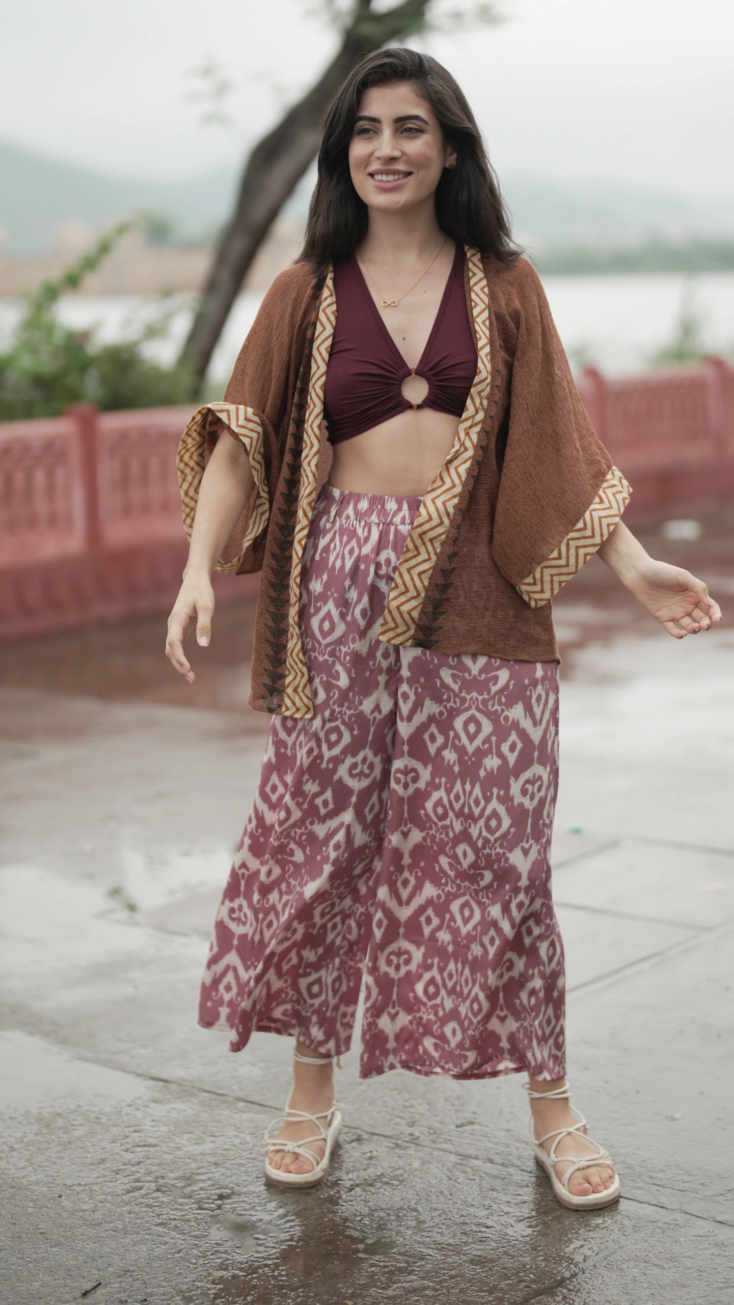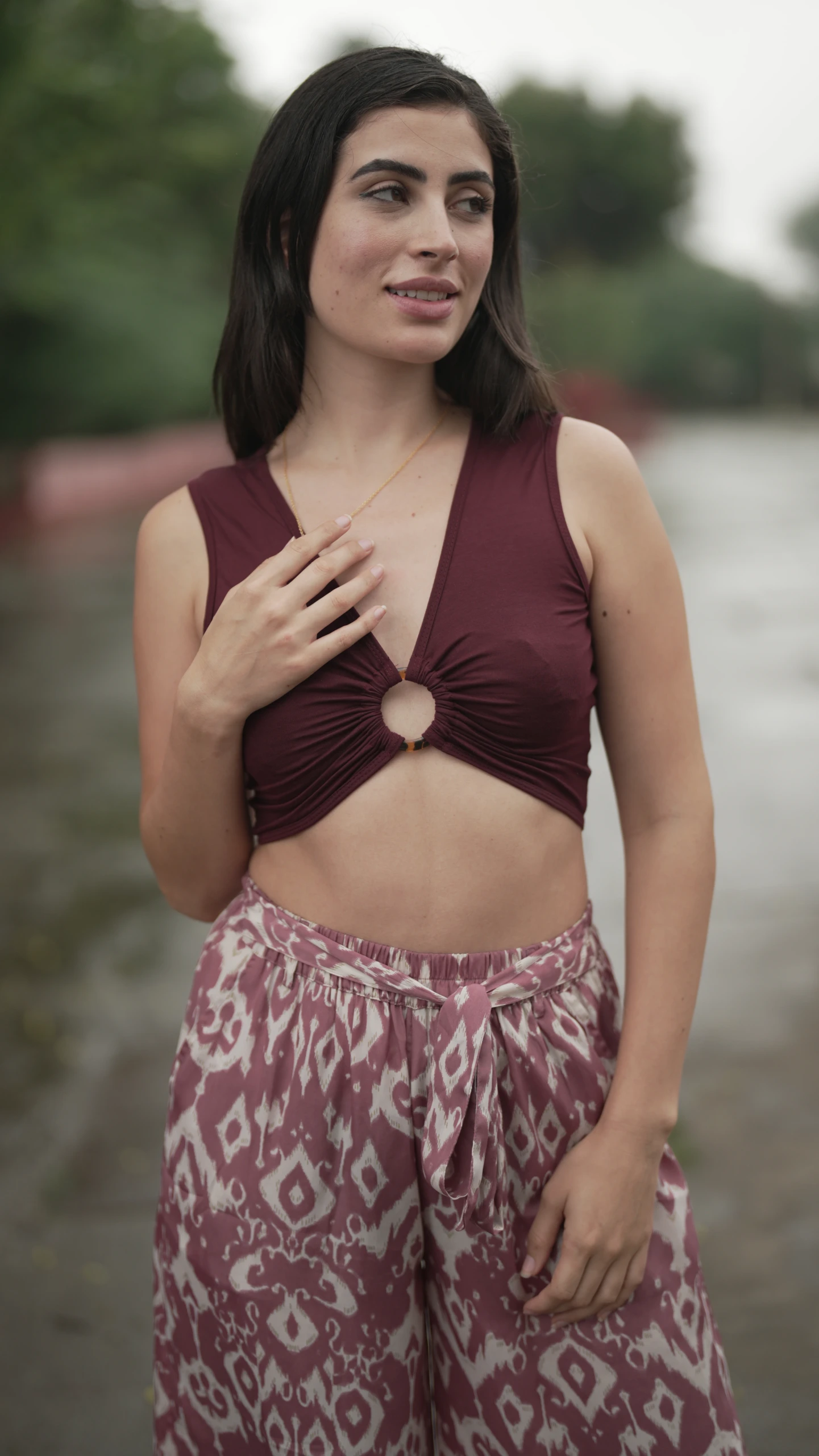 FEATURES- Soft stretchy viscose lycra fabrication, V-neckline, sleeveless silhouette, bustier-inspired design with O-ring, high-low bottom with a triangular shape.