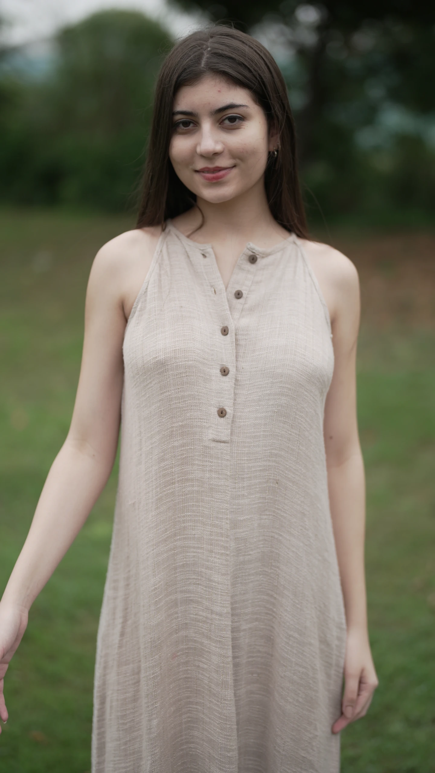 FEATURES- V-neckline, sleeveless silhouette, frill at the bottom, thin double shoulder straps, billowy fit.